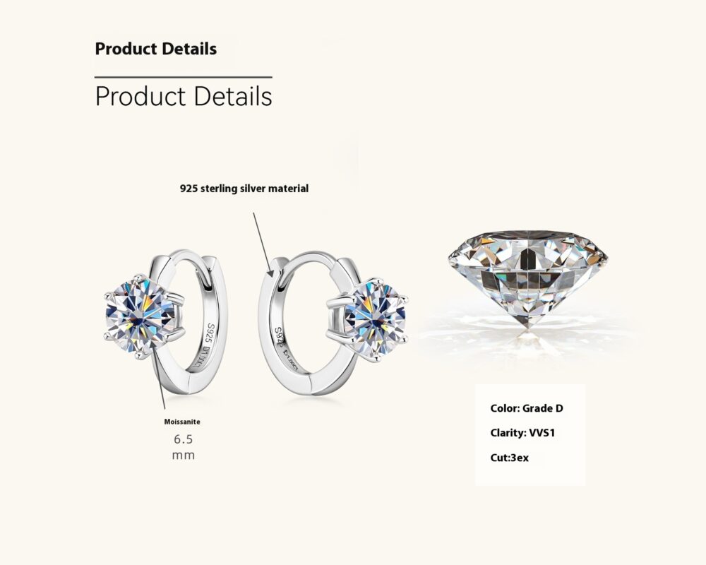 Fashion Simple Moissanite Ear Ring S925 Silver Earrings