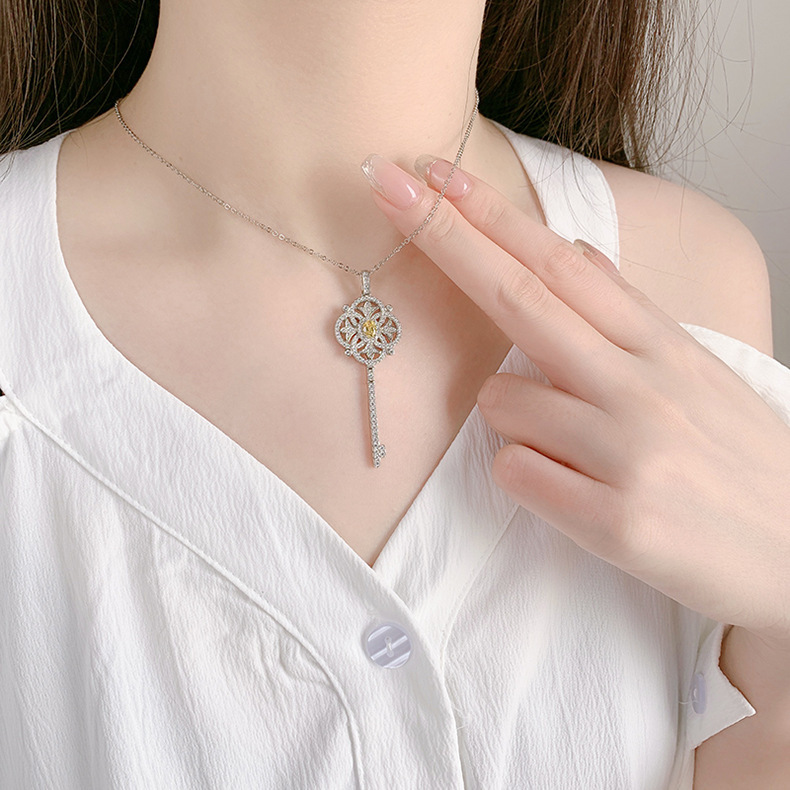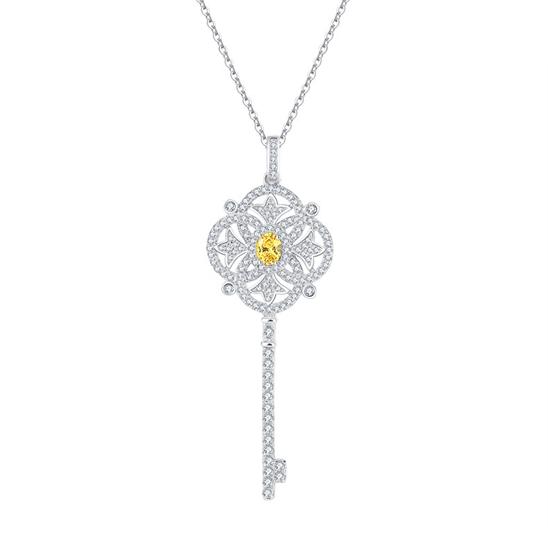 Luxury Ascot Yellow Diamond Key Pendant Heavy Industry Inlaid High Carbon Diamond Collar Chain