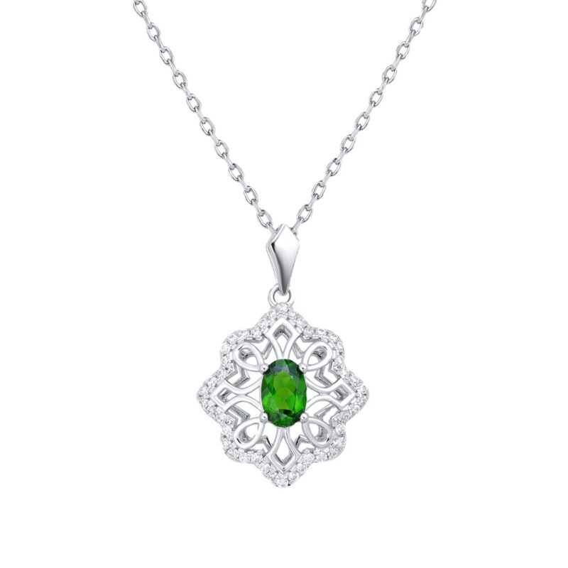 Vintage High Grade Green Diopside Necklace Personality Hollow Eight Star Cool Wind Pendant