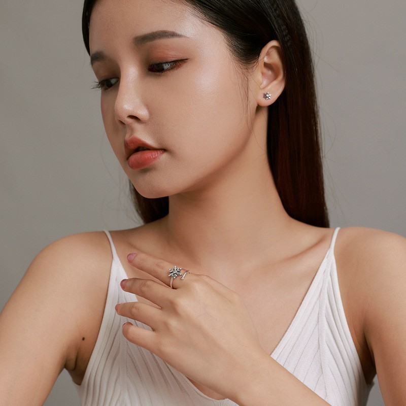 S925 Sterling Silver Star Moon Diamond Adjustable Opening Ring