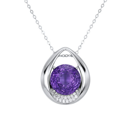 Fashion Simple Drop Shaped Pendant Versatile Temperament Amethyst Necklace Women’s 925 Silver