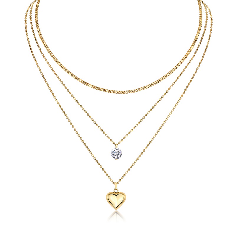 Moissanite Double Layer Pendant Necklace 925 Sterling Silver Round Stylish Choker Necklace