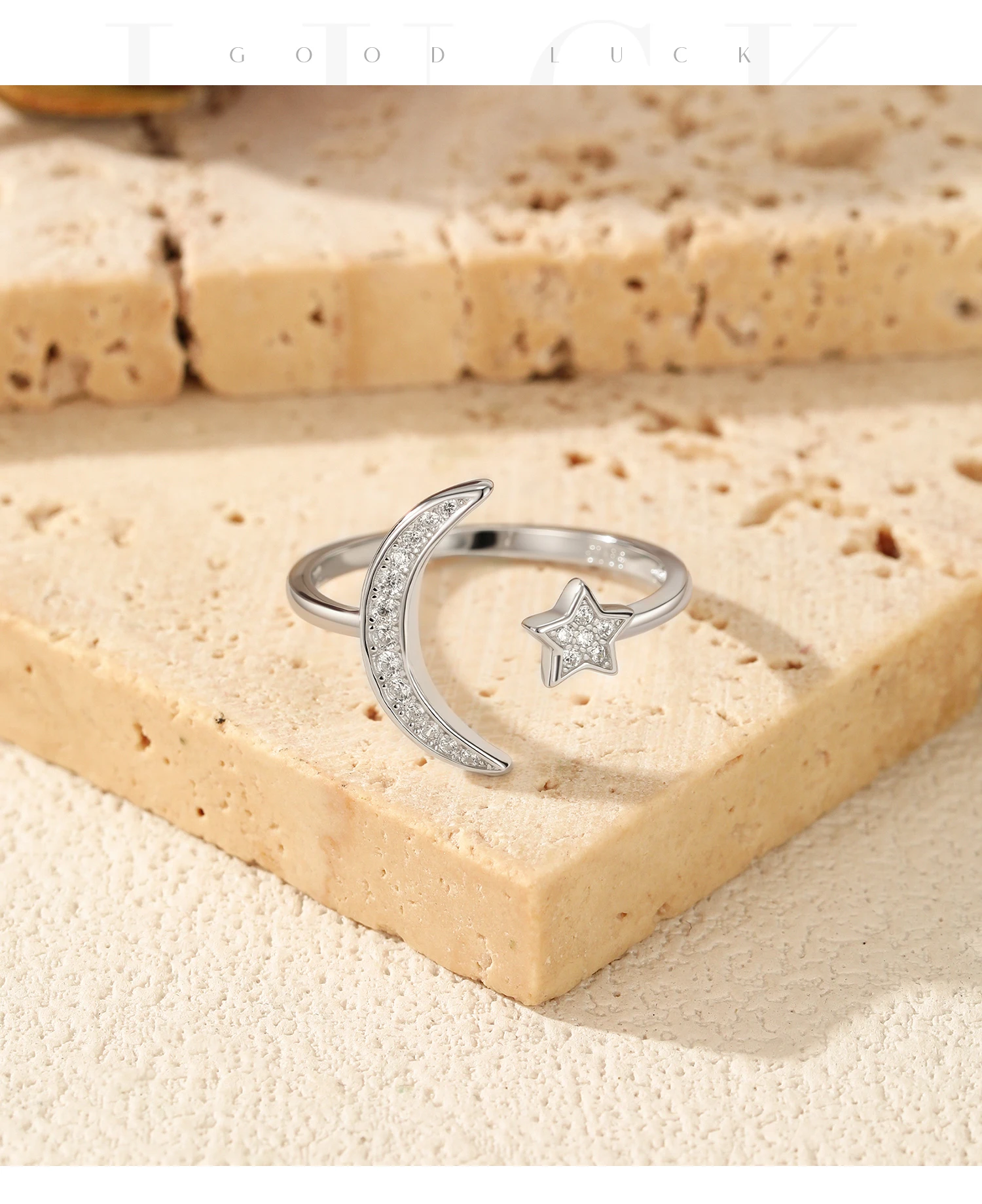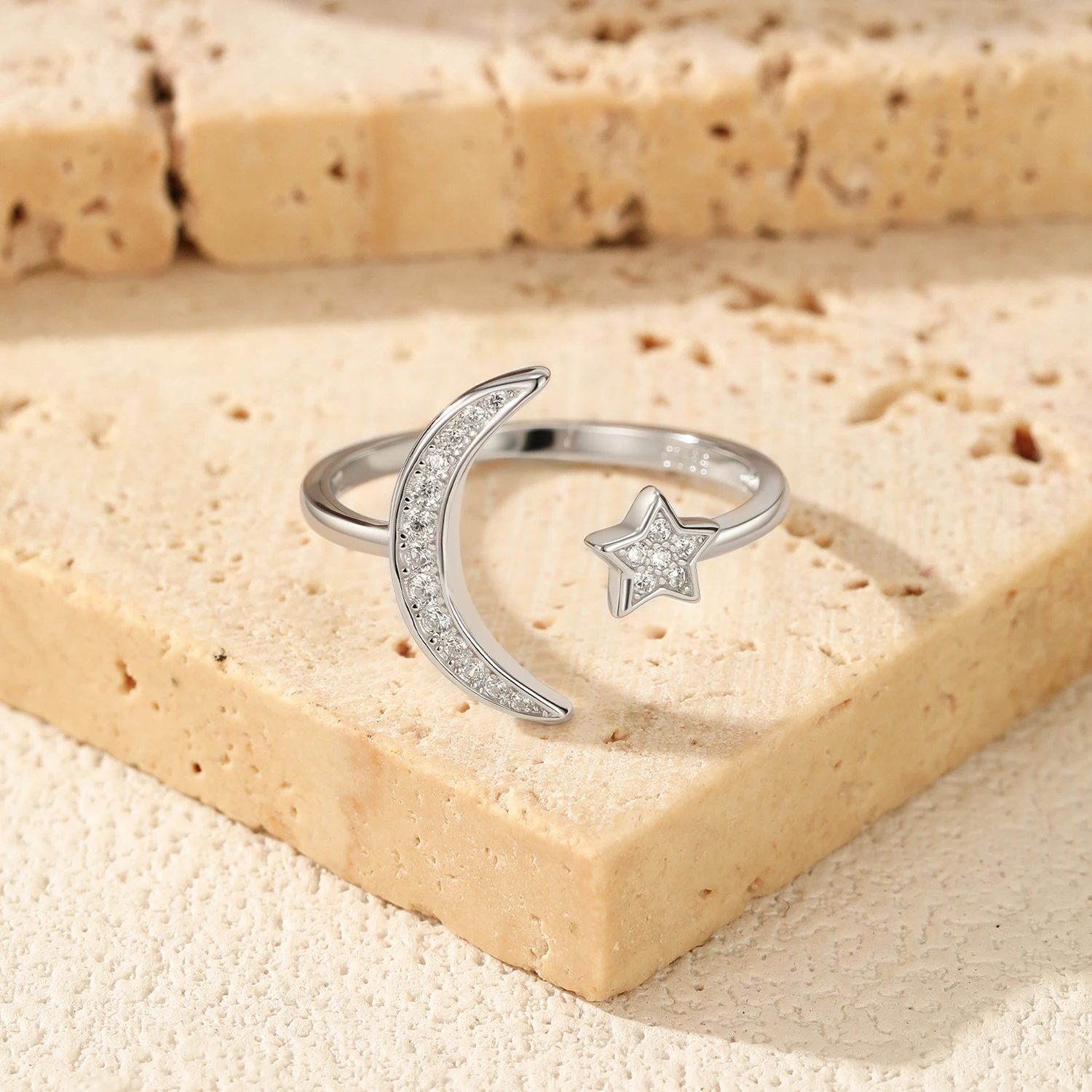 925 Sterling Silver Trendy Adjustable Rings Delicate Moon Stars CZ Finger Rings