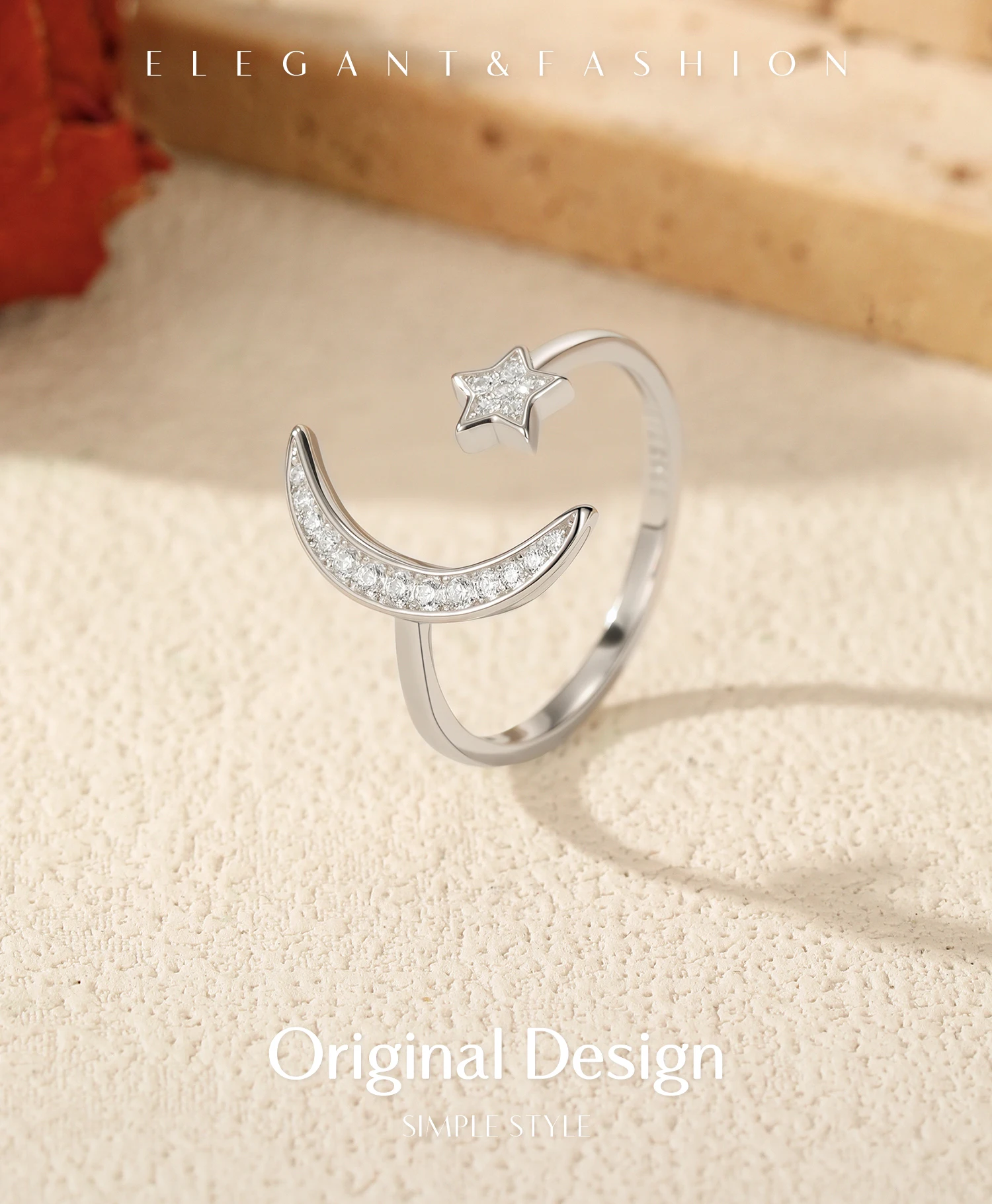 كن أول من يقيم “925 Sterling Silver Trendy Adjustable Rings Delicate Moon Stars CZ Finger Rings”