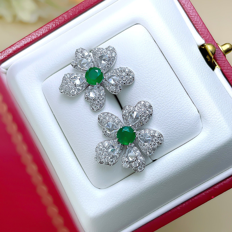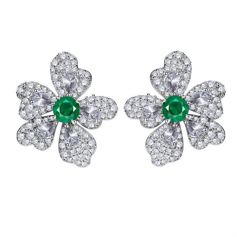 Artificial Emerald Flower Earrings 925 Silver Plated