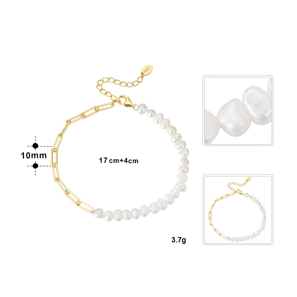 Creative Sterling Silver Natural Freshwater Pearl Necklace Bracelet