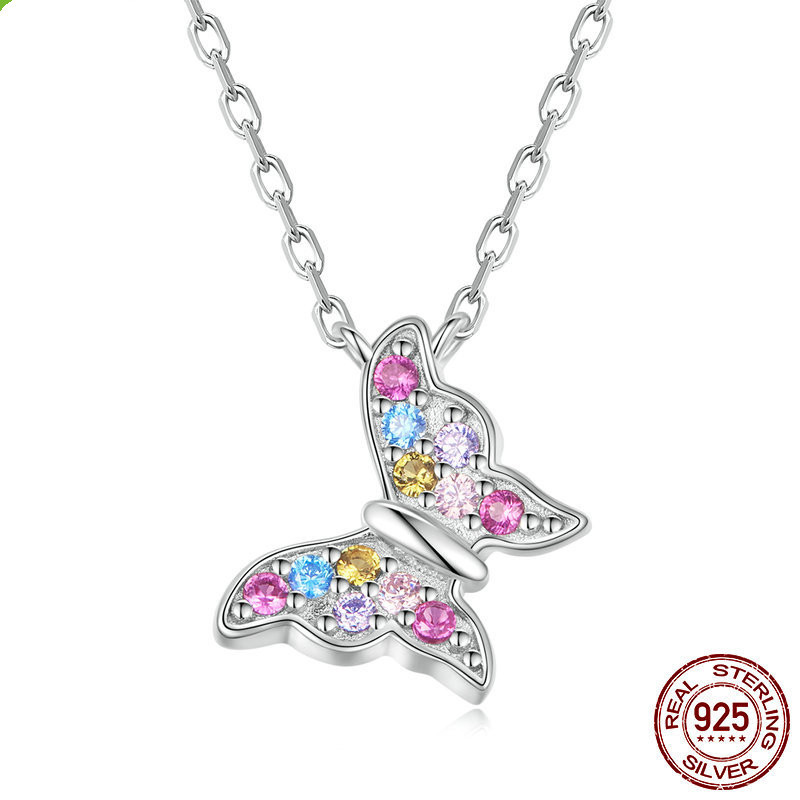الاسم: قلادة فراشة ملونة – قلادة من الفضة الإسترليني.
