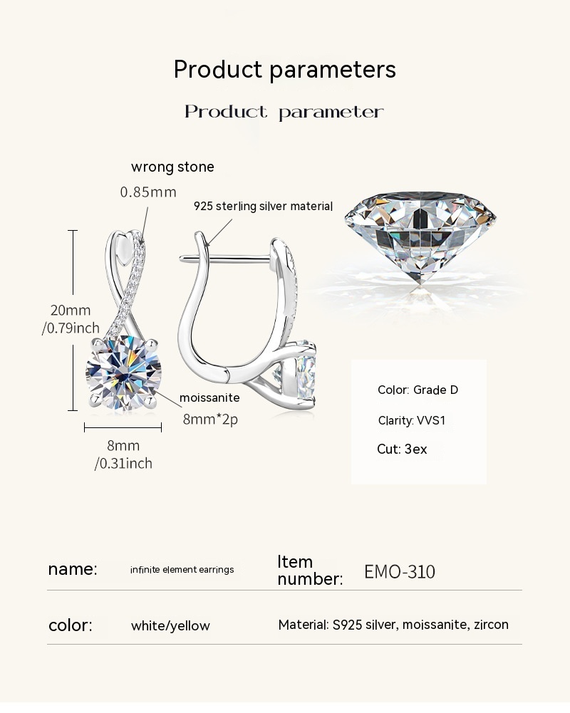 925 Silver Elegant Moissanite Earrings For Women That Wont Fade Or Discolor