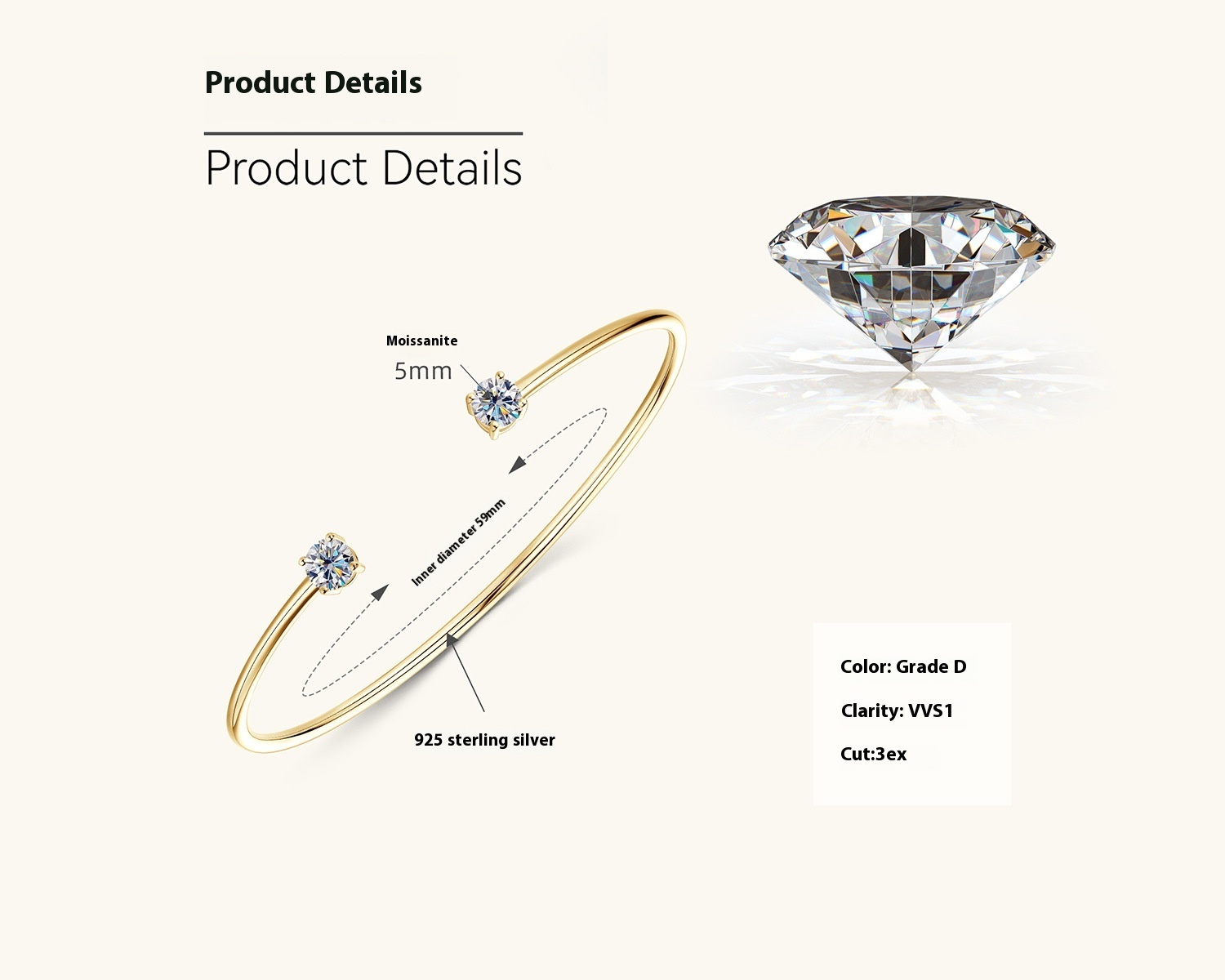 Set With Top-quality Moissanite, This Luxurious And Fashionable Light Luxury Trend Jewelry Silver Bracelet Is S925 Silver-plated With Gold