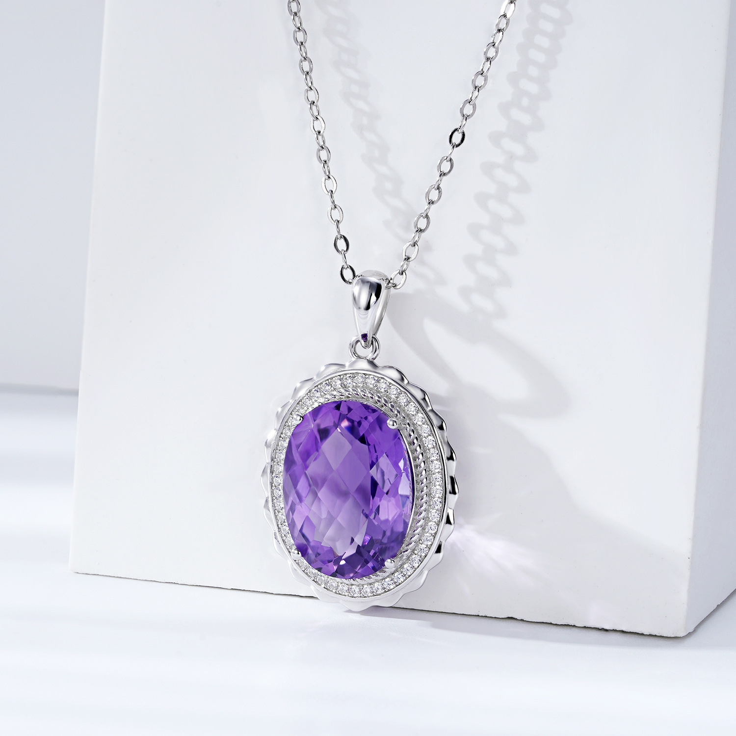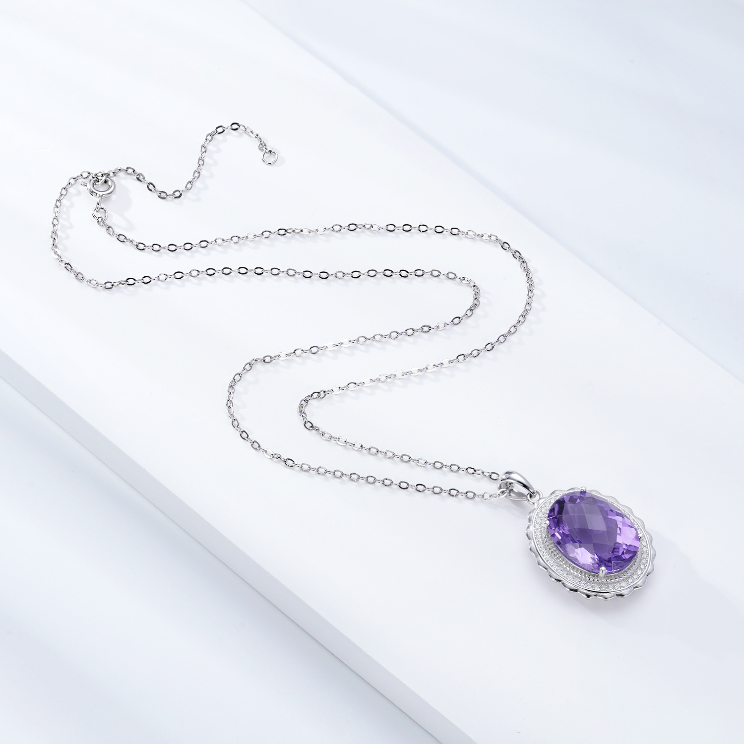 Luxury Style Necklace S925 Silver Set Oval Natural Amethyst Pendant