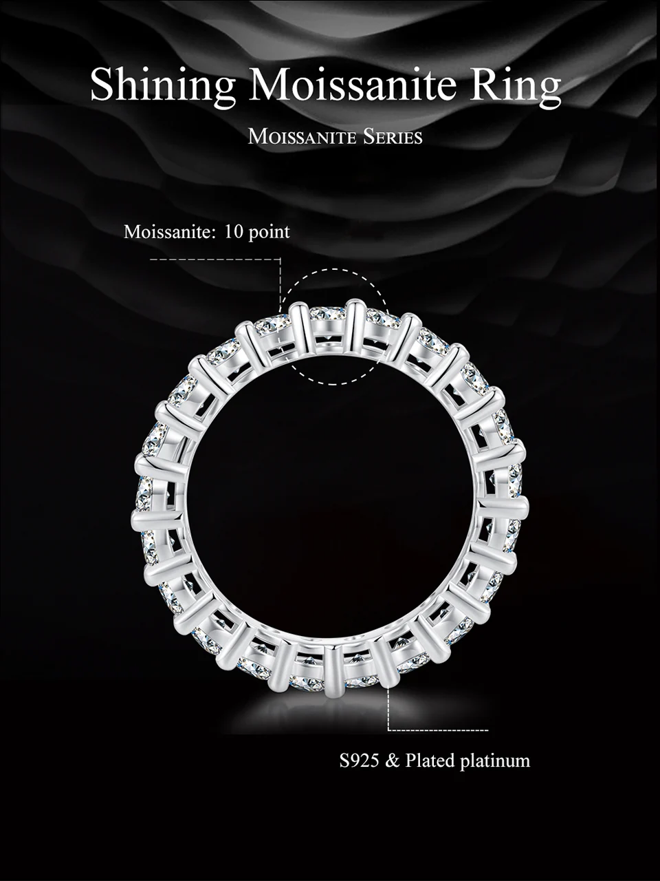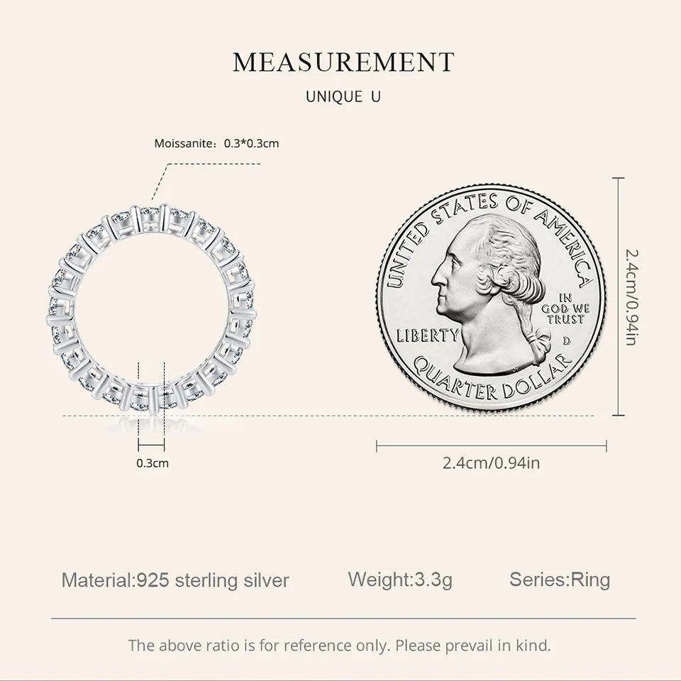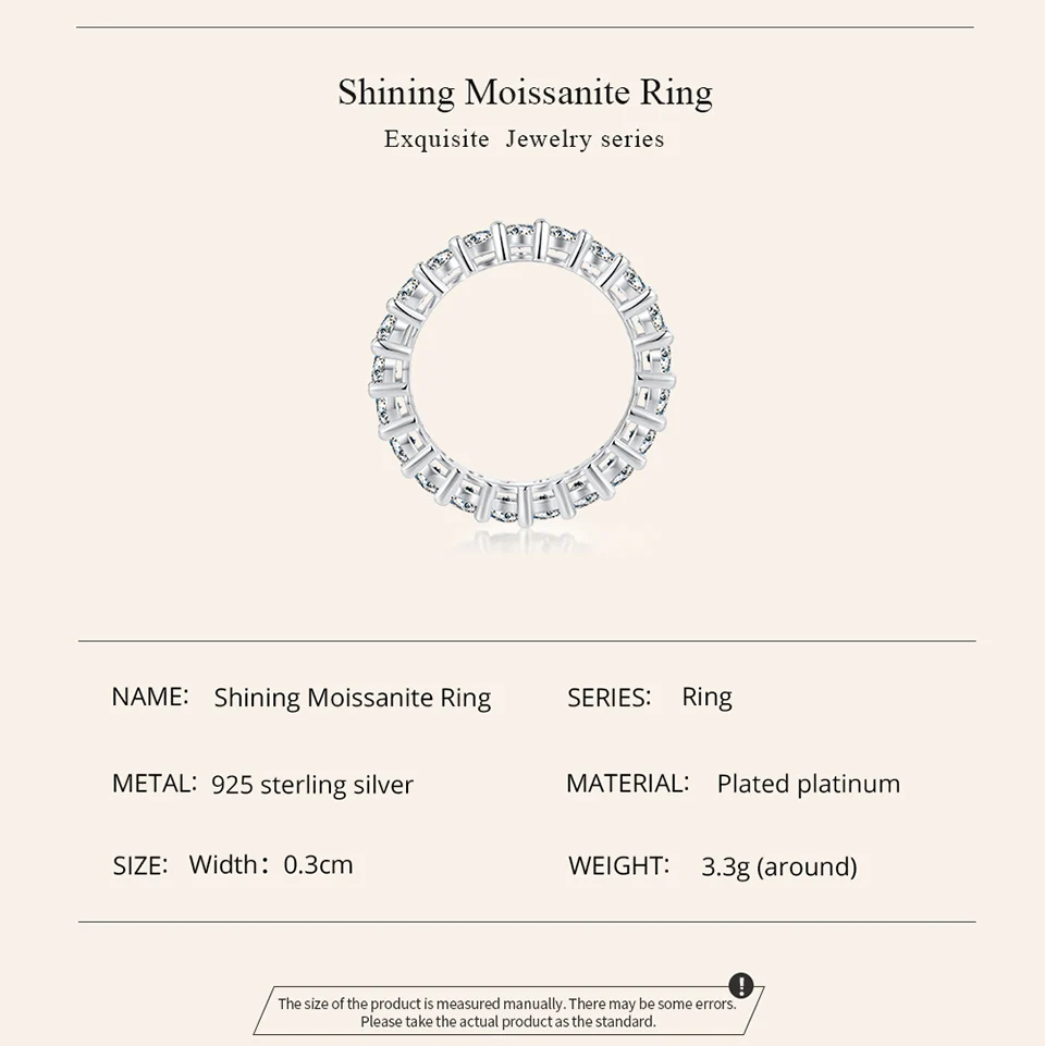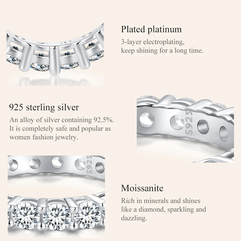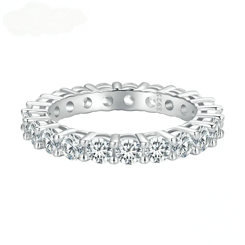 Moissanite Full Eternity Band Ring for Women 925 Sterling Silver Classic round Cut Wedding Band Moissanite Stones