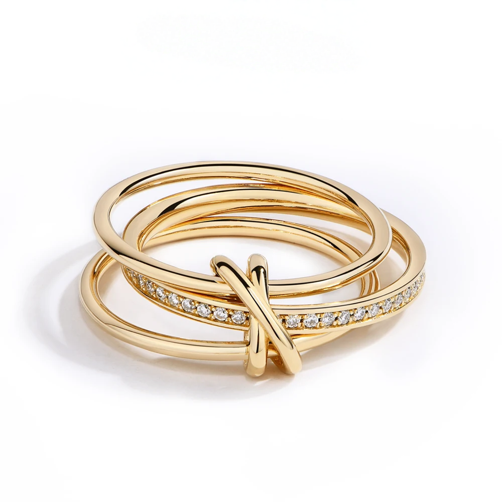 Fashion S925 Sterling Silver Four-ring Buckle Row Diamond Ring