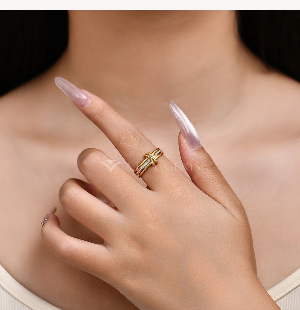 Intersection – A Wedding Ring Set With Top-quality Moissanite S925 Silver