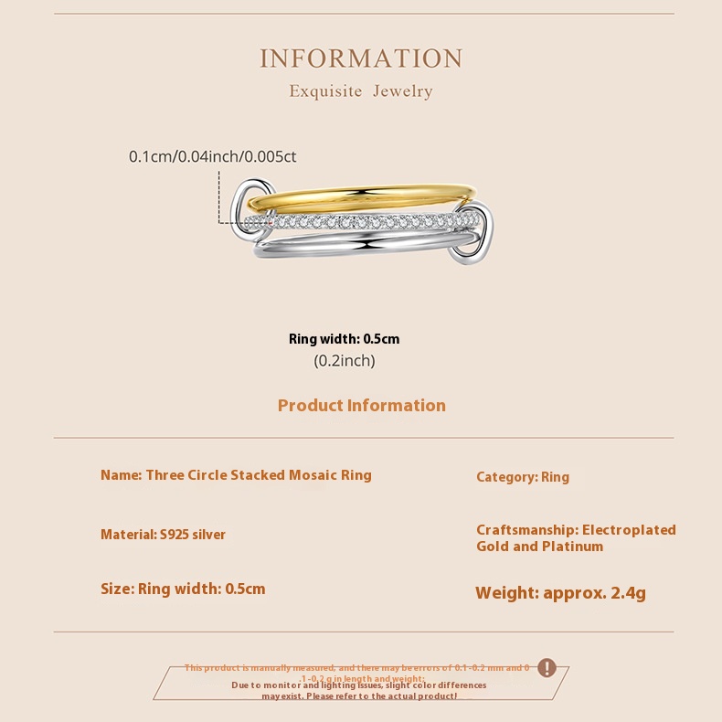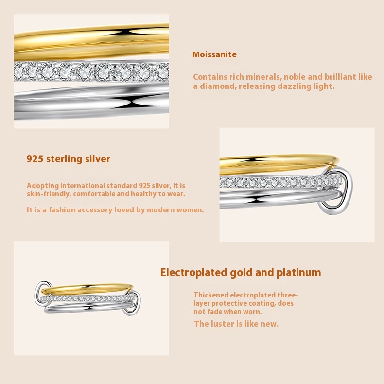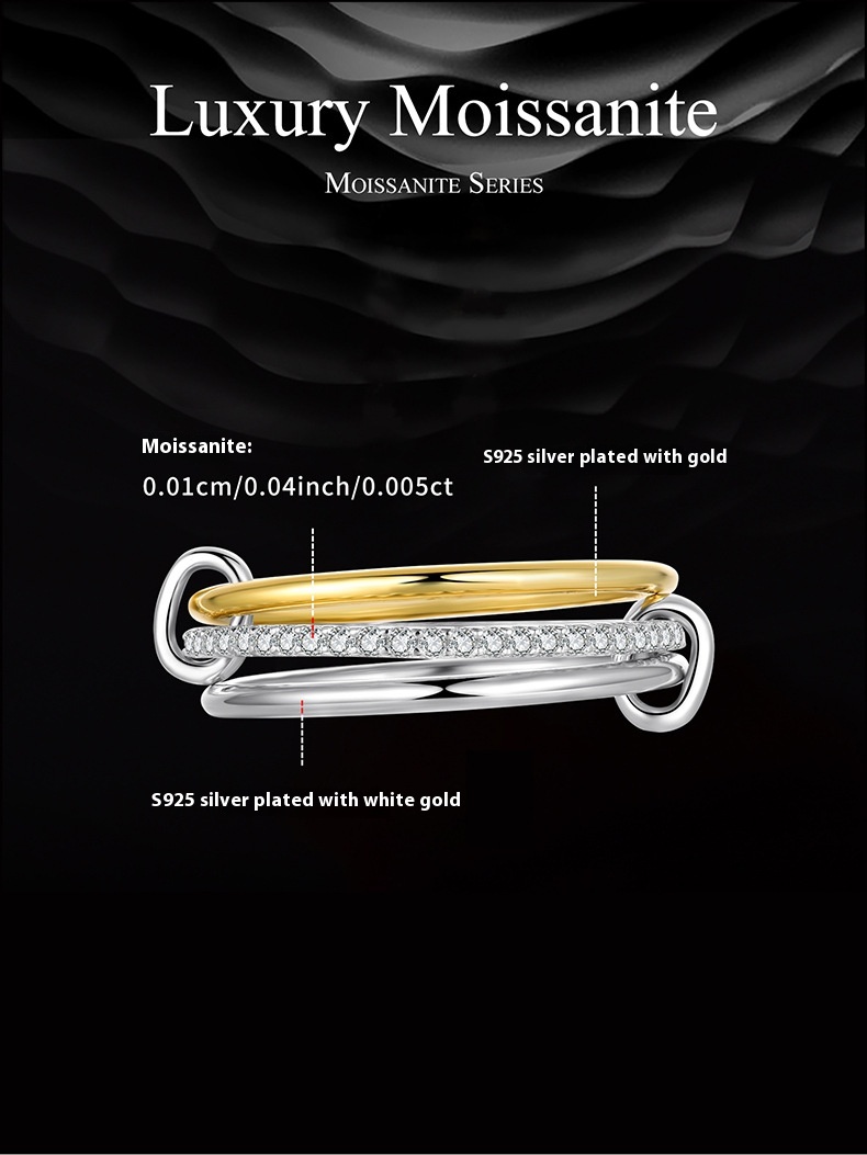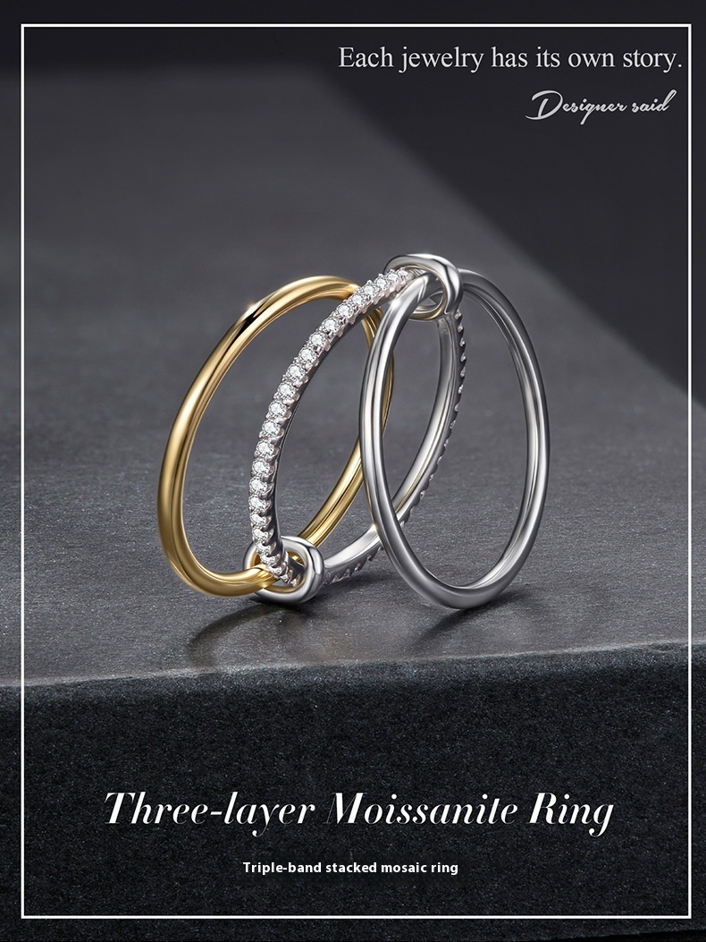 S925 Sterling Silver Three-circle Stacking Moissanite Ring