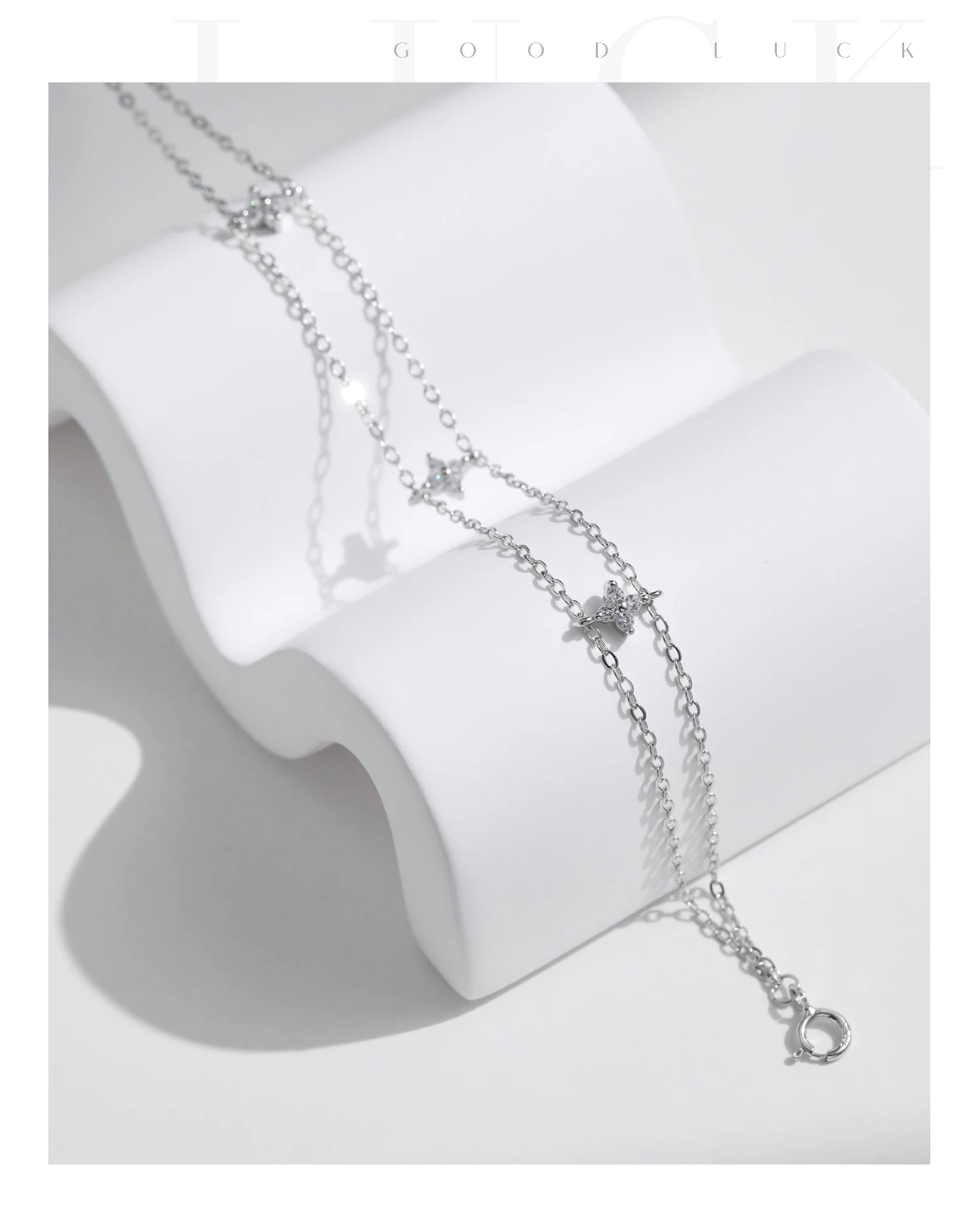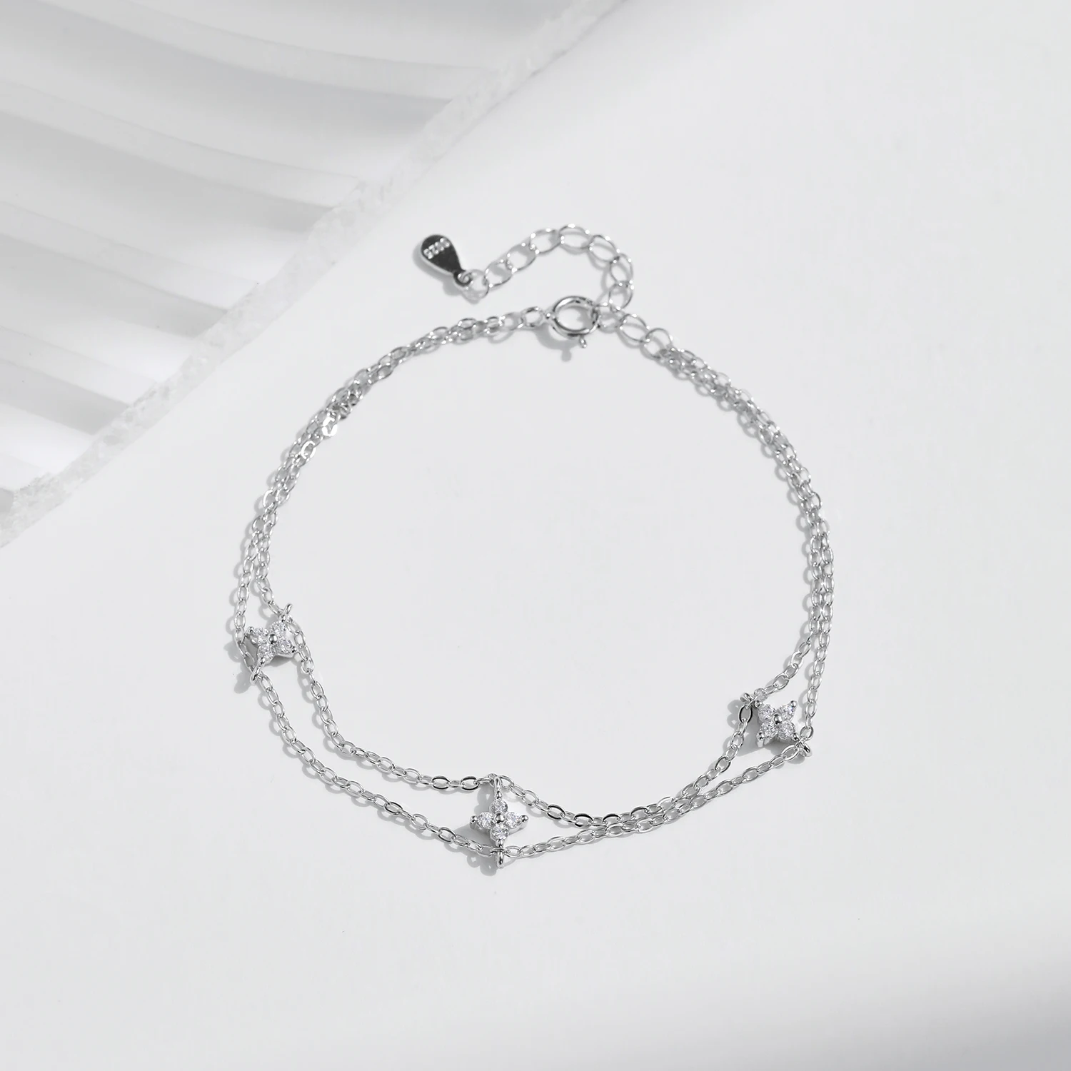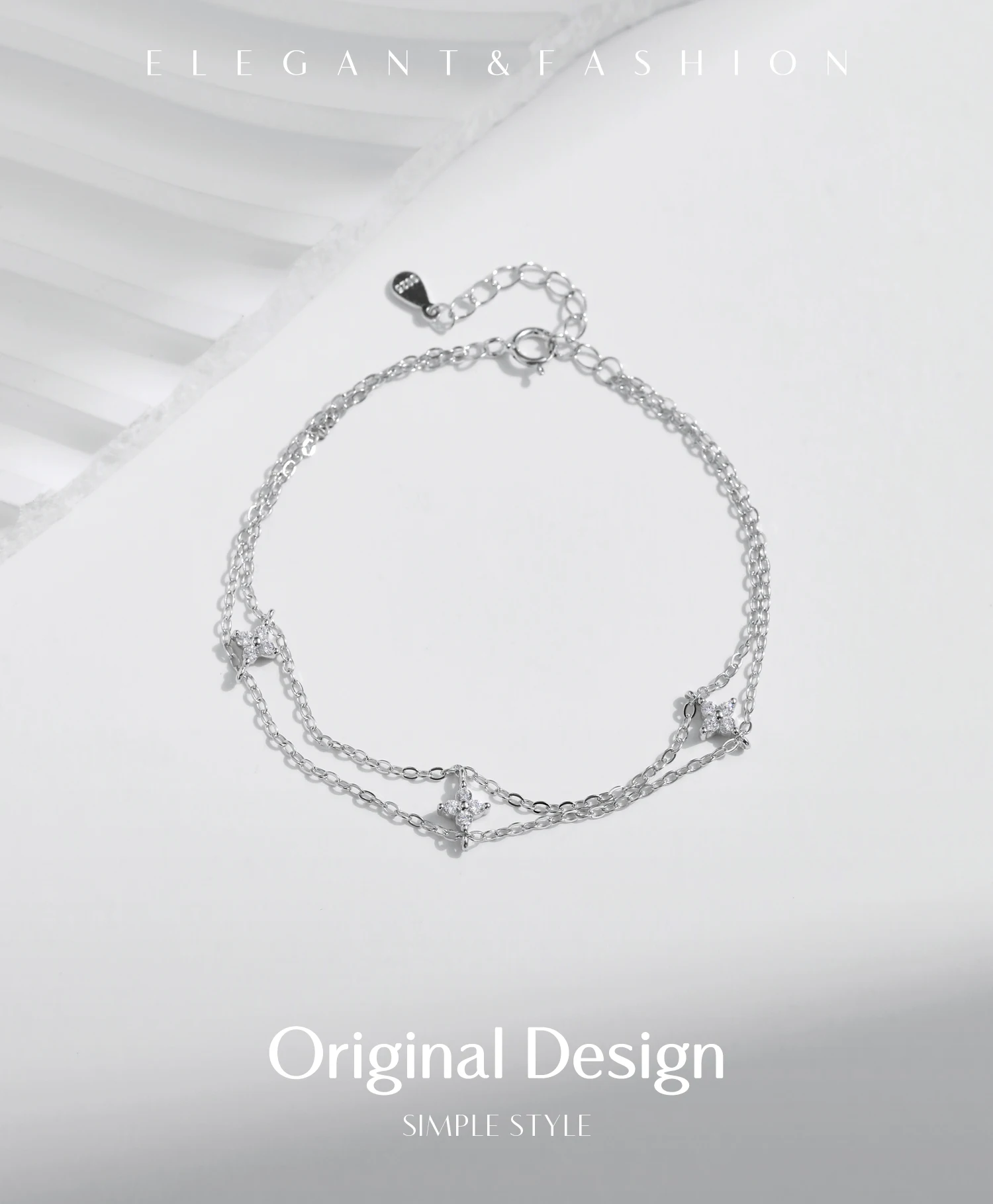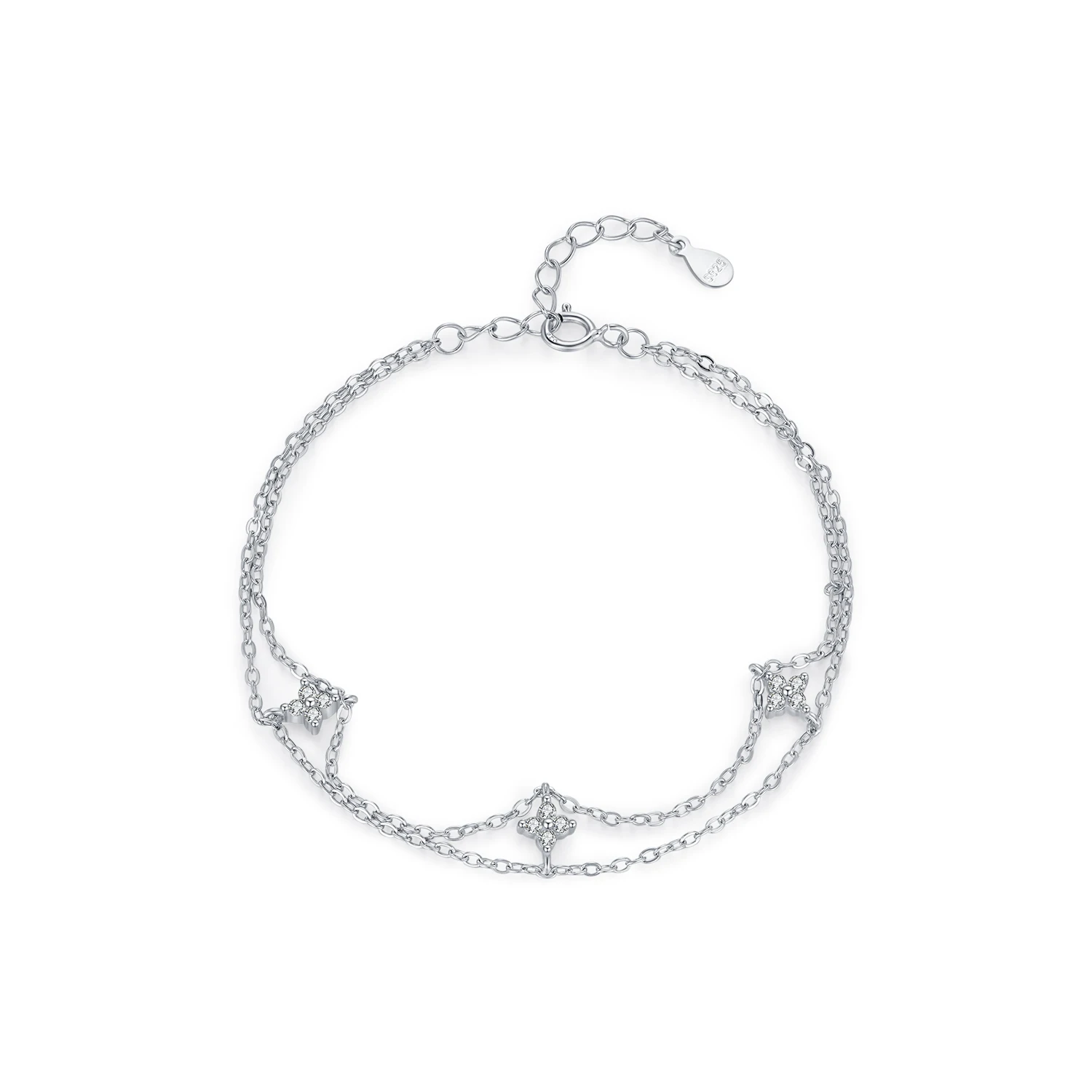 Silver Double-layer Four Leaf Clover Bracelet Trendy Chain Link Bracelets