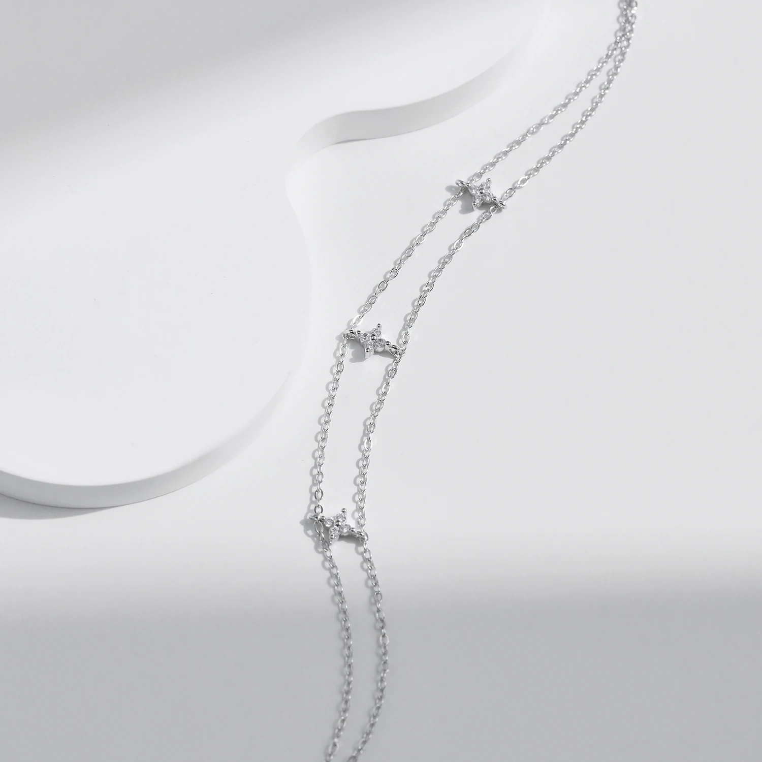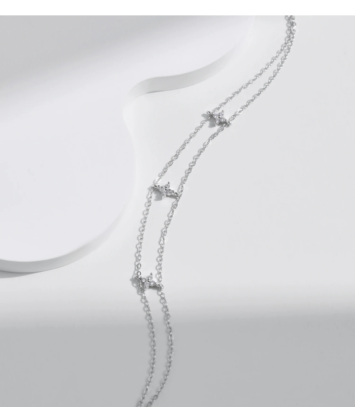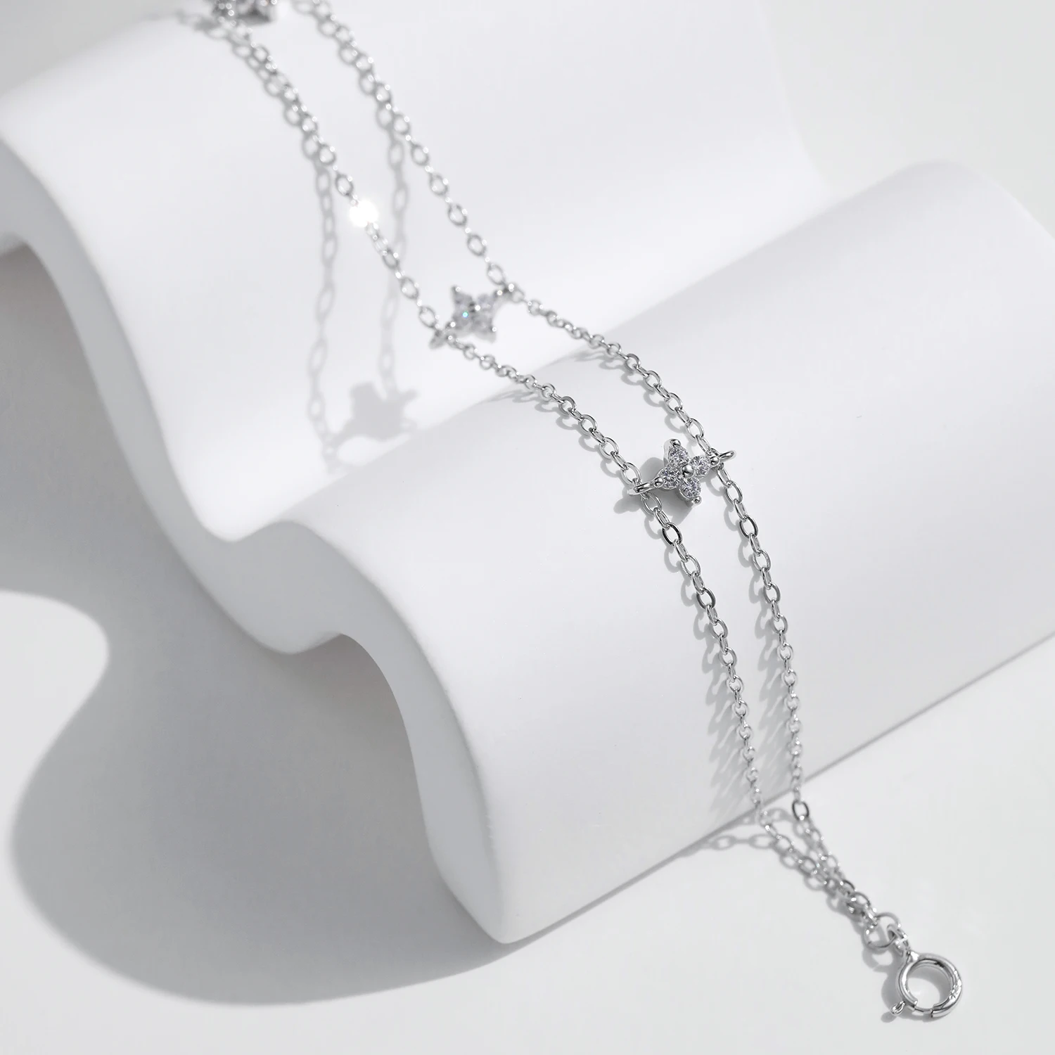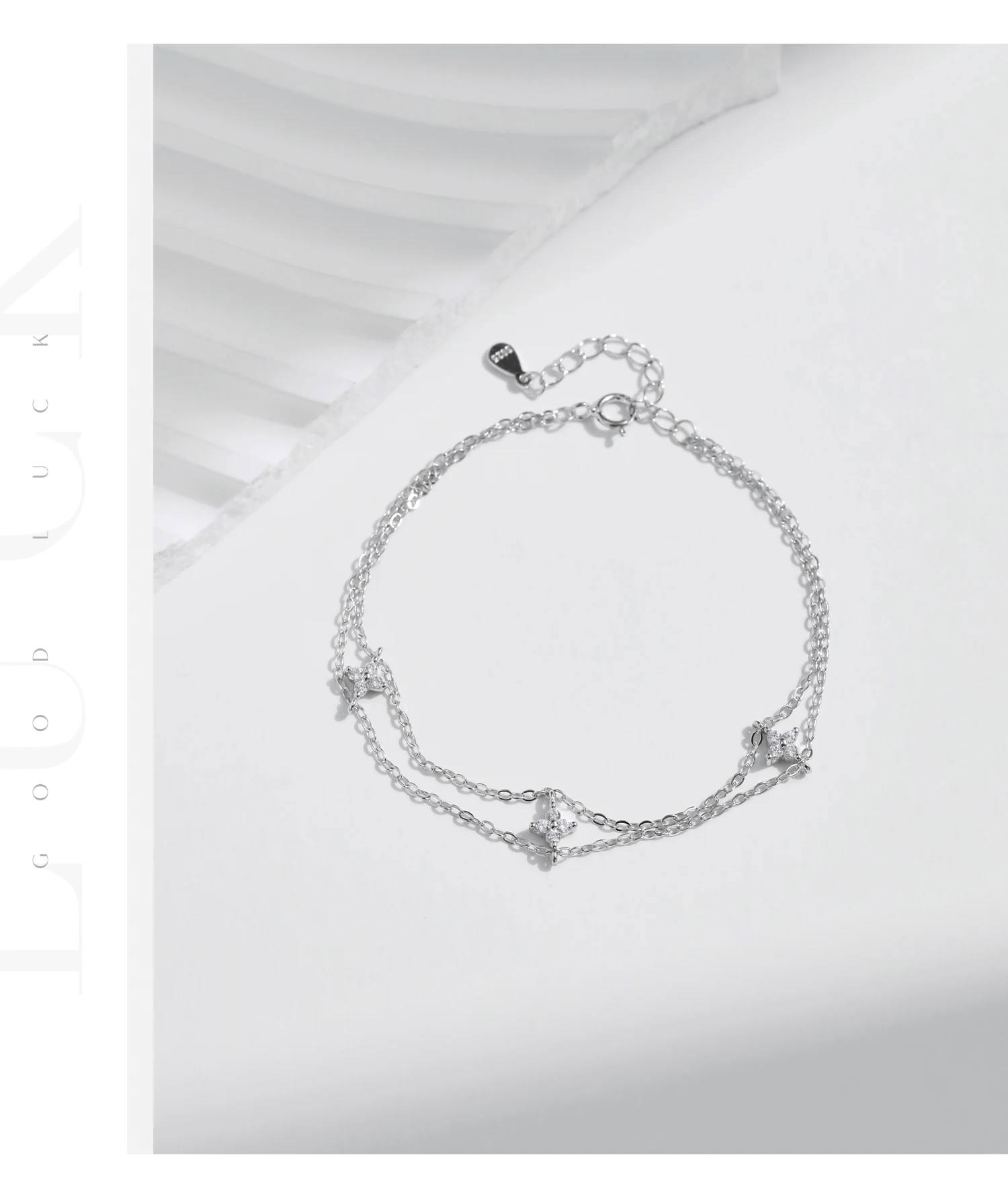 Silver Double-layer Four Leaf Clover Bracelet Trendy Chain Link Bracelets