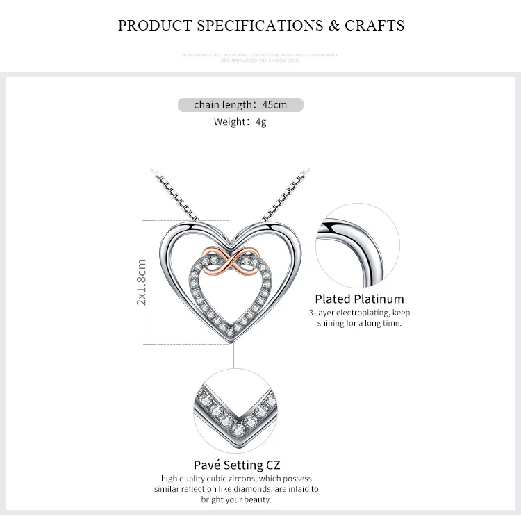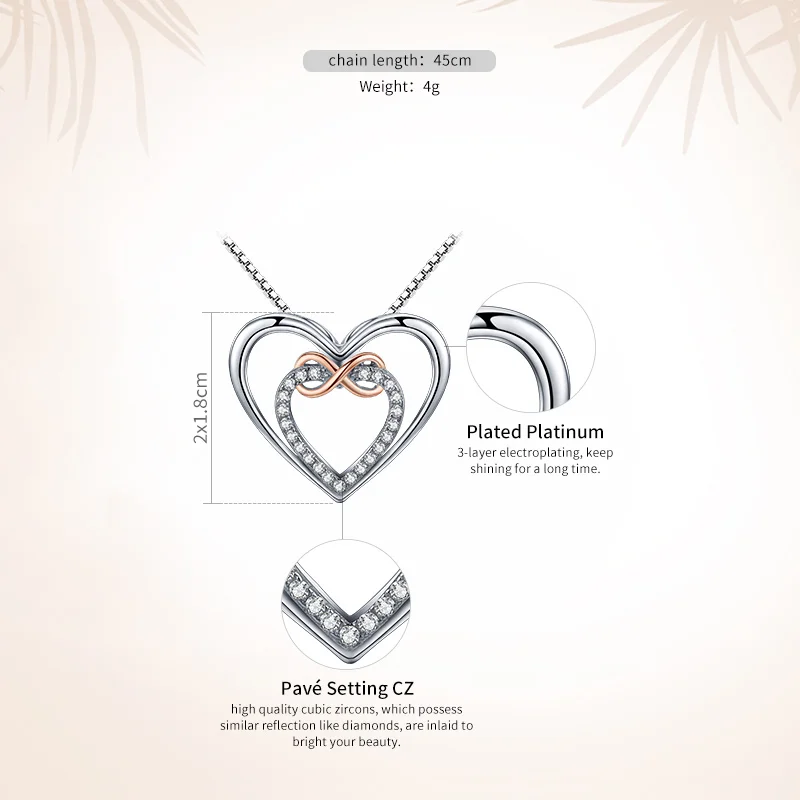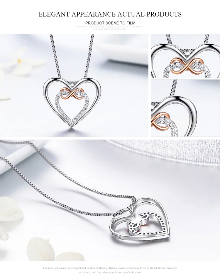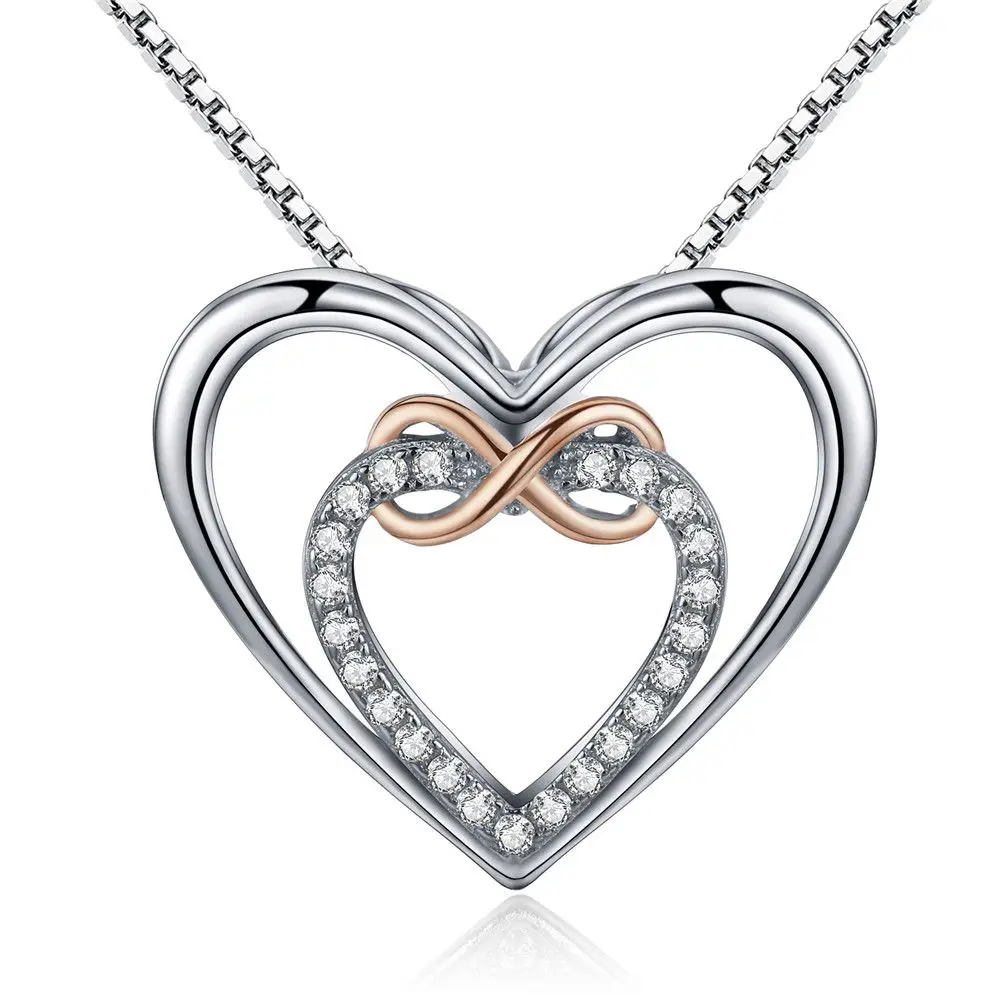 925 Sterling Silver Elegant Double Heart Infinity Love Pendant Necklace