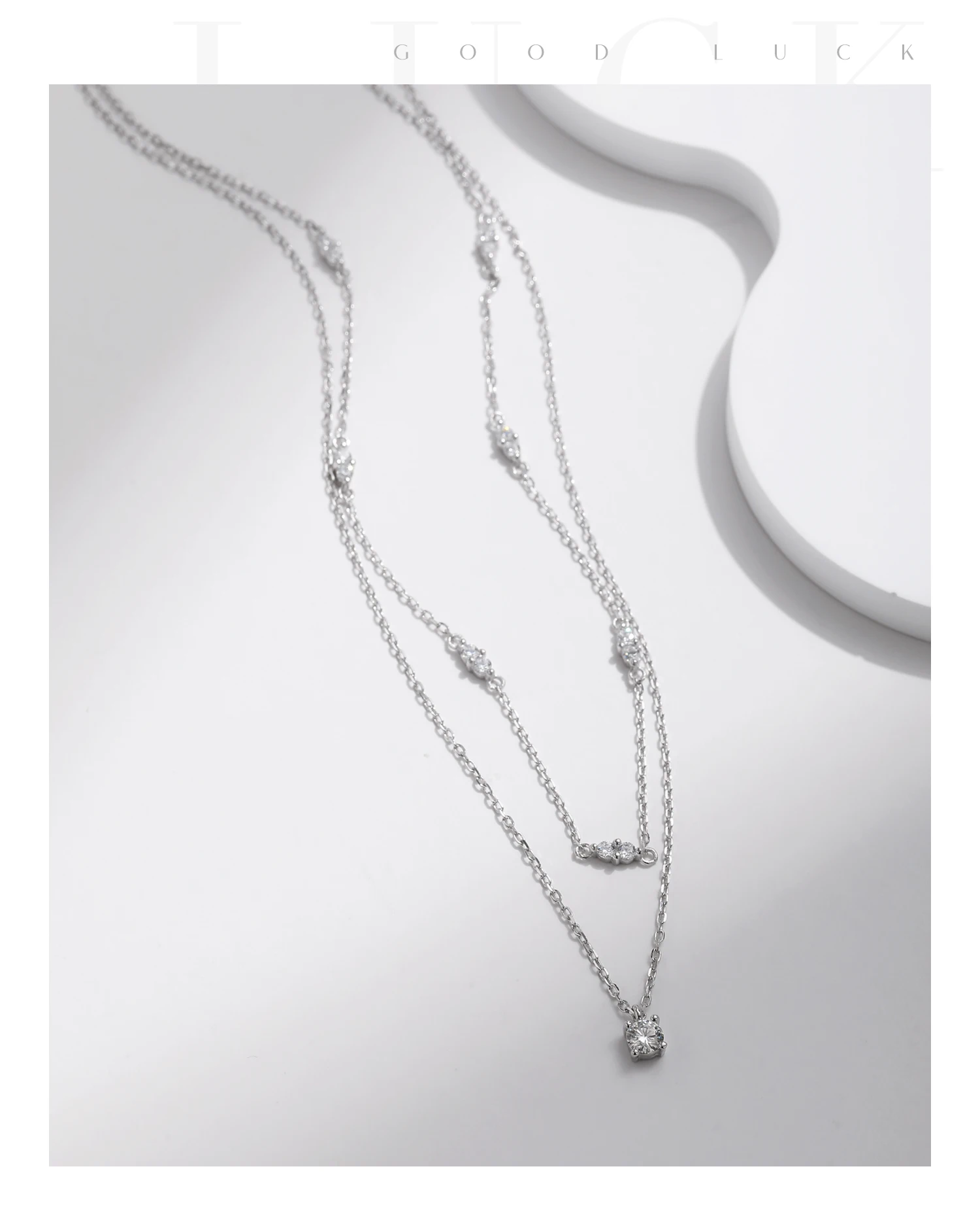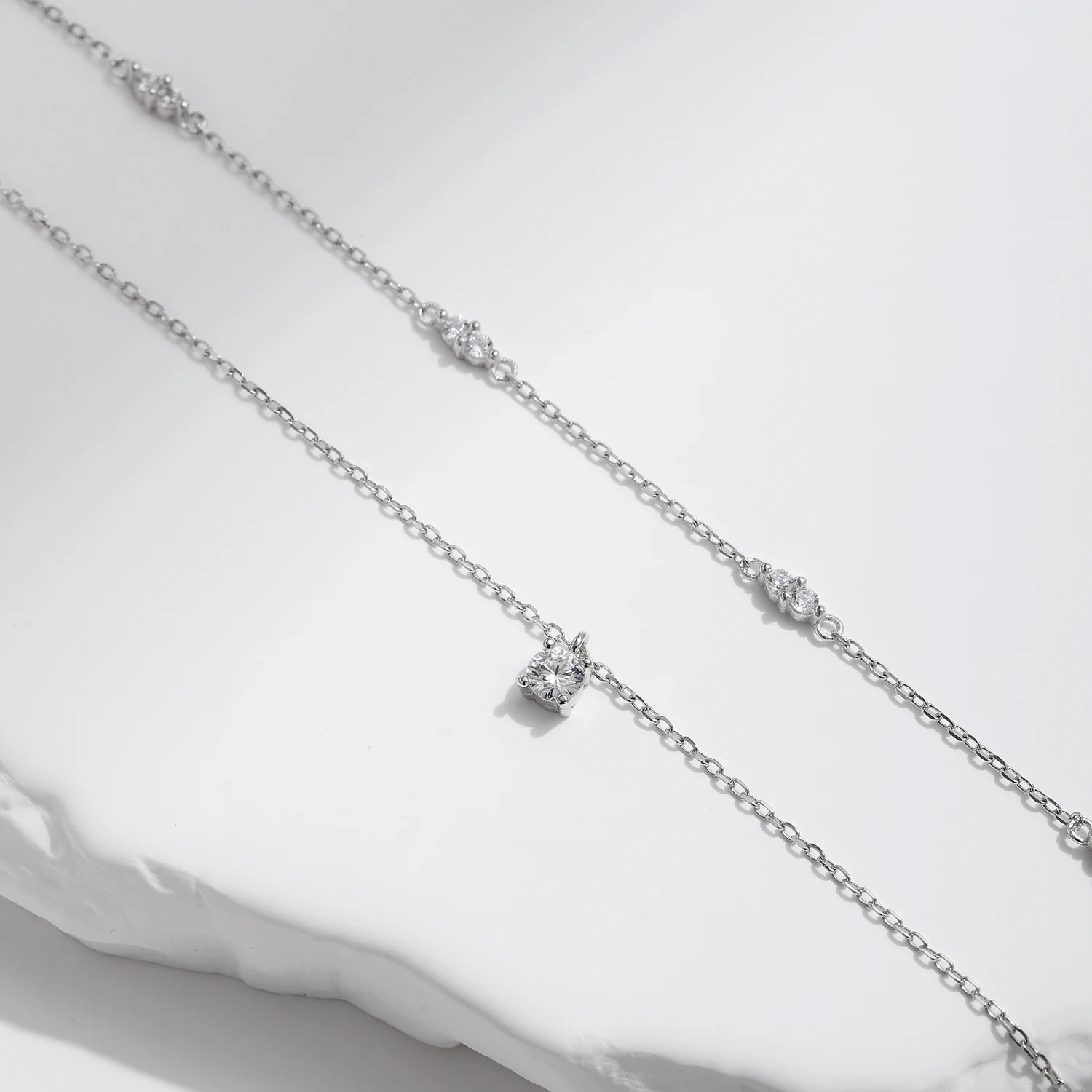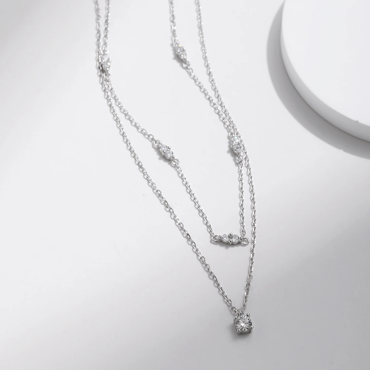 Moissanite Double Layer Pendant Necklace 925 Sterling Silver Round Stylish Choker Necklace